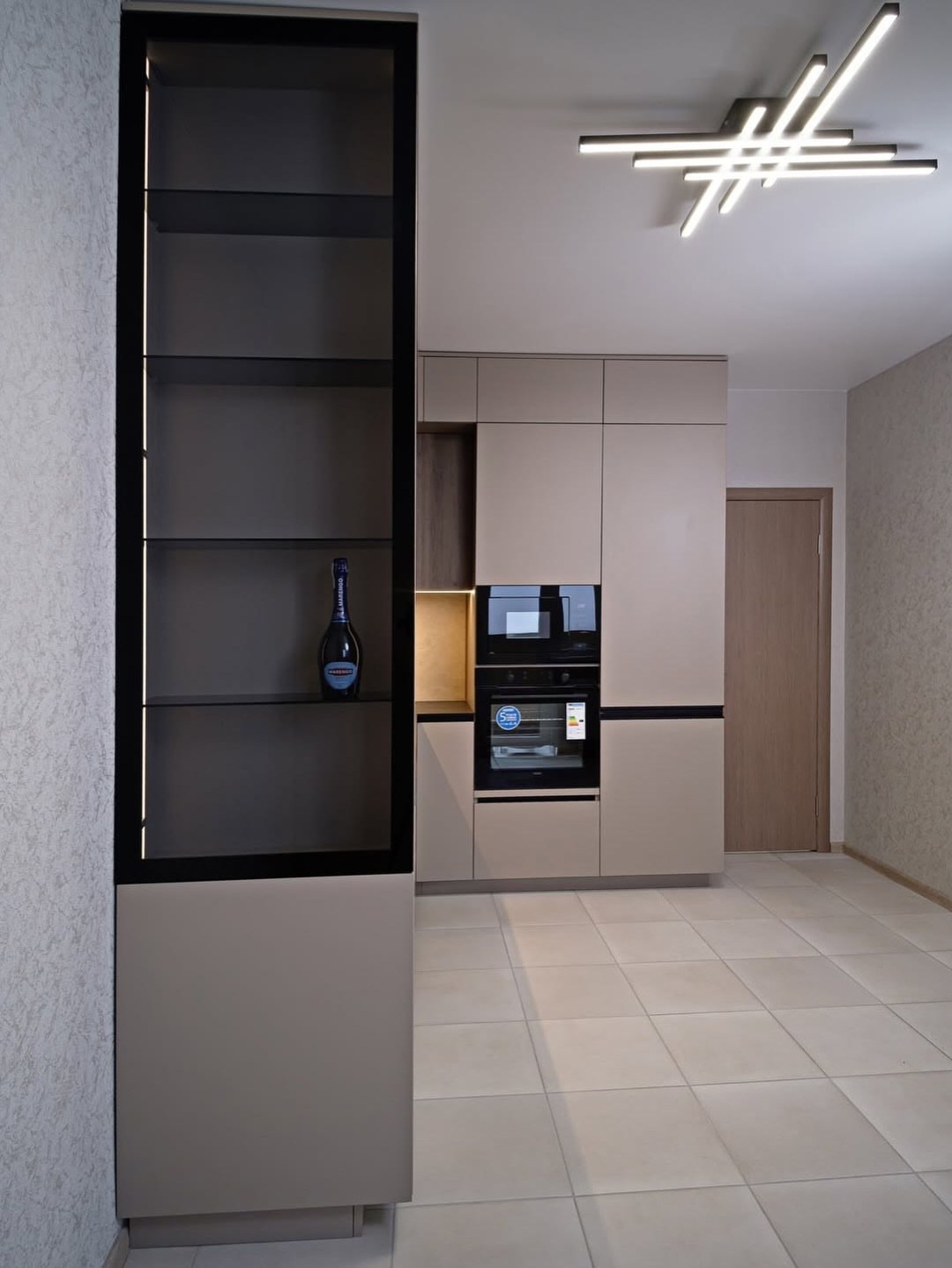 - Встроили технику в колонну (духовой шкаф + СВЧ), чтобы освободить столешницу.